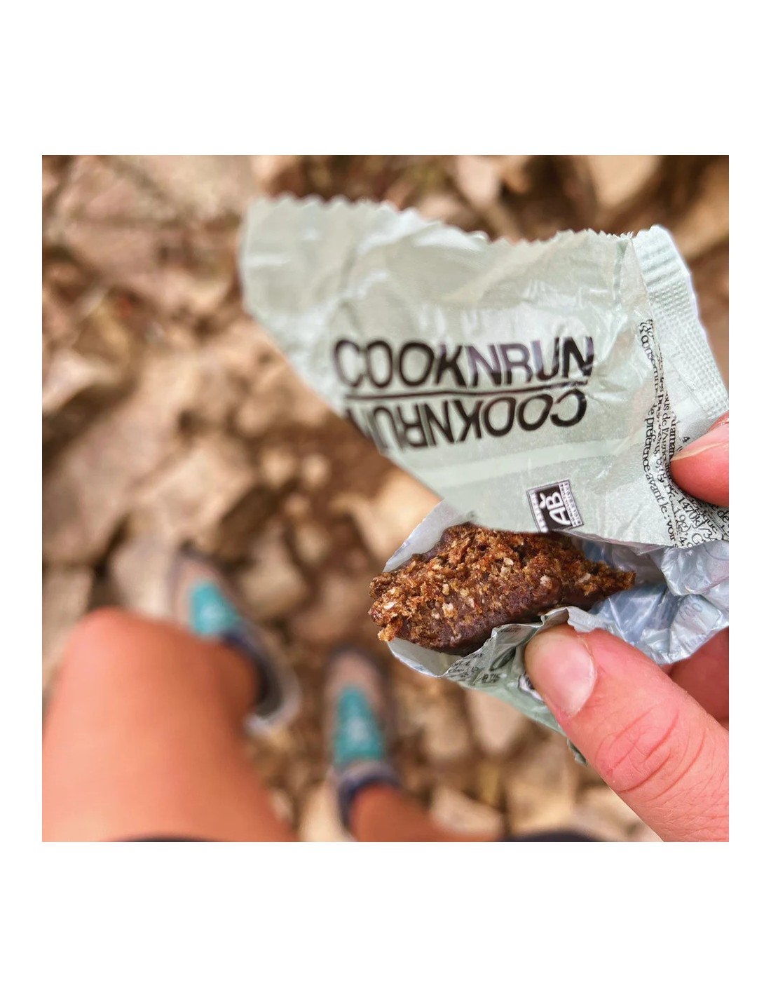 Confectionnée en France par Cooknrun, cette barre est élaborée à partir d’ingrédients bruts et biologiques, sans additifs ni sucres raffinés. Elle est vegan et préparée sans ingrédients contenant du gluten (peut contenir des traces dues à la fabrication artisanale).
