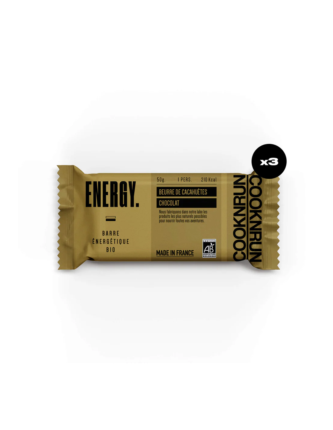 Barre énergétique Beurre de Cacahuète & Chocolat Bio Cooknrun, 100 % naturelle, vegan et fabriquée en France.