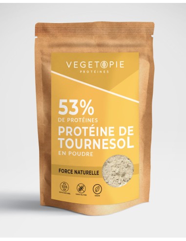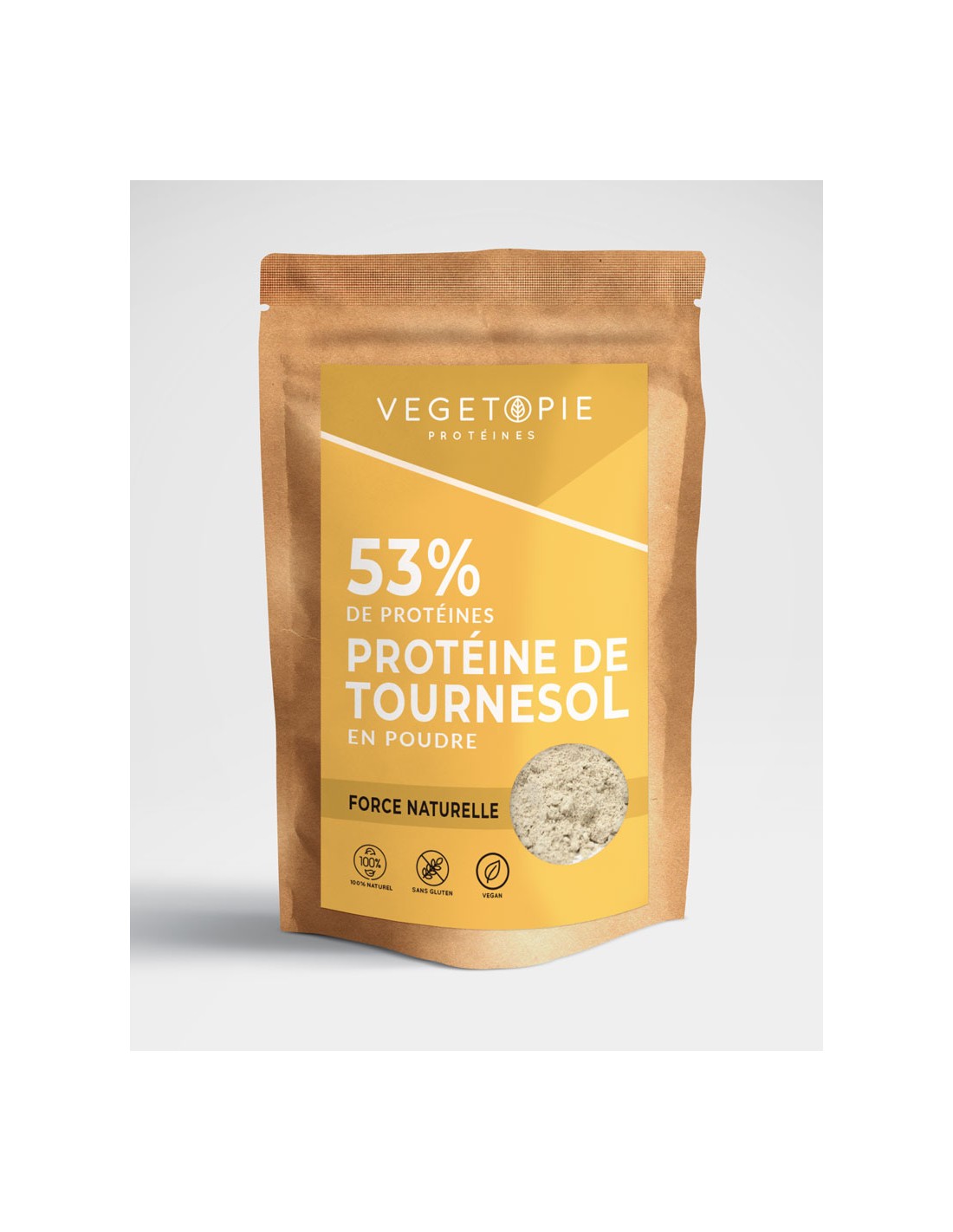 La protéine de tournesol est une excellente alternative végétale, naturellement riche en BCAA (valine, leucine, isoleucine) et en fibres alimentaires. Elle offre un profil complet en acides aminés essentiels, tout en étant douce pour la digestion.